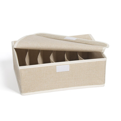L412.01 蓋付き下着収納ボックス-棉麻款 6格/ 6マス 米色 beige ベージュ