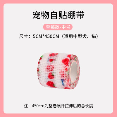 K565.22 犬用包帯(自粘绷带-5色款) Mサイズ/ 草莓 Strawberry イチゴ