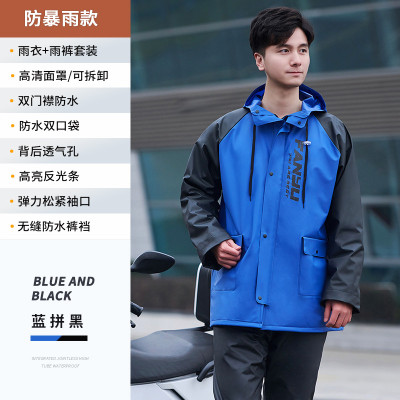 K861.23 大人レインコート上下セット/时尚拼色 サイズXL 蓝色 blue ブルー