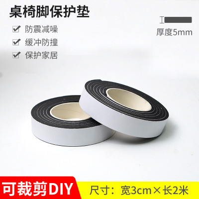 K598.02 椅子脚パッド(自裁款/EVA泡棉+背胶) 幅3cm*厚さ5mm*長さ2M 黑色 black ブラック