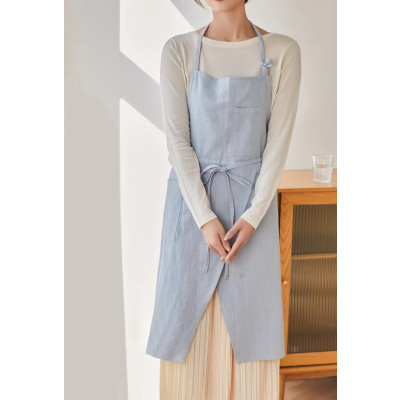 K775.08 エプロン-亚麻燕尾式 天蓝色 sky blue スカイブルー