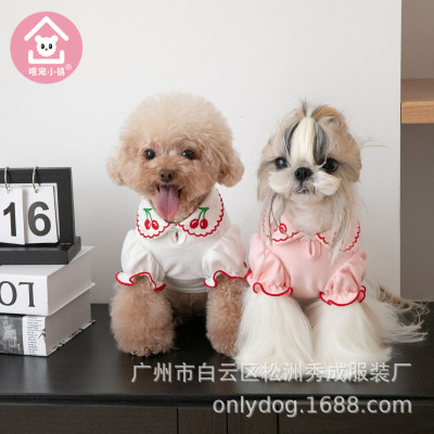 K763.01 中小型犬の春夏服 Tシャツ-樱桃波边 サイズ2XS 白色 white ホワイト
