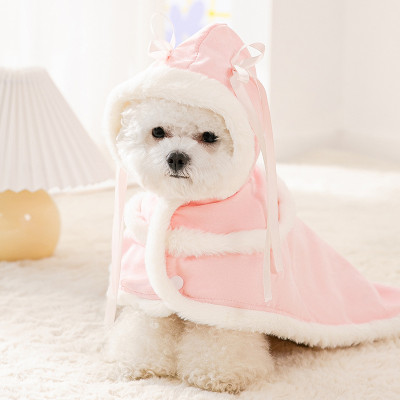 K735.01 中小型犬の服 マント-蝴蝶结飘带 サイズS 粉色 pink ピンク