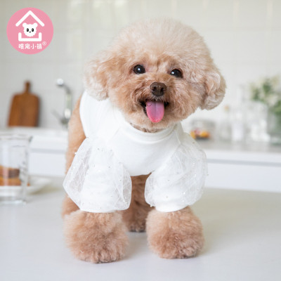 K743.03 中小型犬の服 Tシャツ-米珠蕾丝泡泡袖 サイズXS 白色 white ホワイト