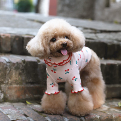 K728.24 中小型犬の服 Tシャツ-樱桃翻领 サイズS 粉色 pink ピンク