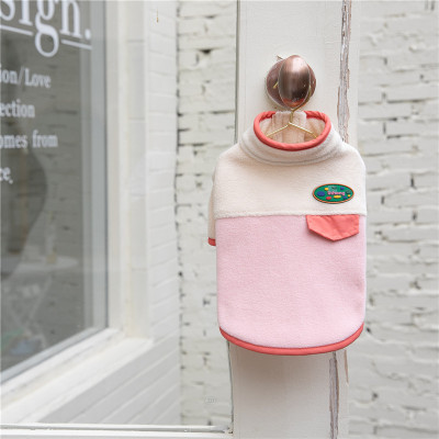 K396.25 中小型犬の服 コート-摇粒绒撞色 サイズL 粉色 pink ピンク