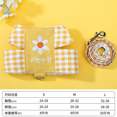 K343.03 犬猫用胸当て&ハーネス&リードセット-雏菊格子 サイズL 黄色 yellow イエロー
