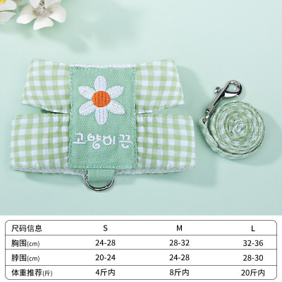 K343.13 犬猫用胸当て&ハーネス&リードセット-雏菊格子 サイズL 绿色 green グリーン