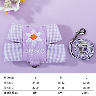 K343.22 犬猫用胸当て&ハーネス&リードセット-雏菊格子 サイズM 紫色 purple パープル