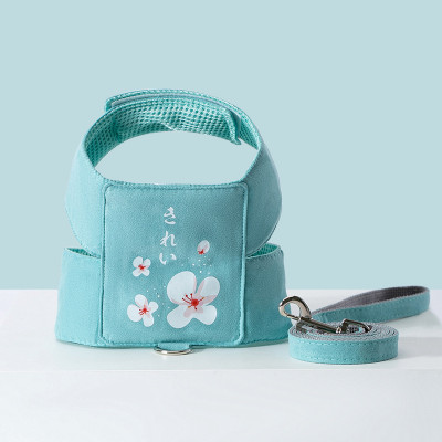 K344.01 犬猫用胸当て&ハーネス&リードセット-和风樱花 サイズS 绿色 green グリーン