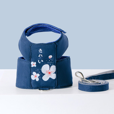 K344.11 犬猫用胸当て&ハーネス&リードセット-和风樱花 サイズS 藏蓝色 Navy ネイビー
