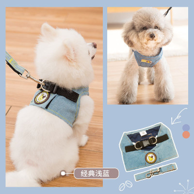 K302.21 犬猫用胸当て&ハーネス&リードセット-牛仔背心 サイズS 浅蓝色 Light blue ライト ブルー