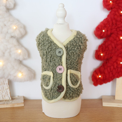 J842.12 中/小型犬の服ボアベスト(三色彩扣) タイプA/サイズS 绿色 green グリーン