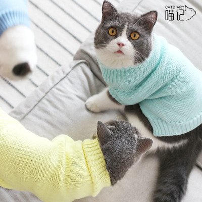 J574.34 猫の服(彩色猫咪毛衣) XLサイズ/ 天蓝色 sky blue スカイブルー