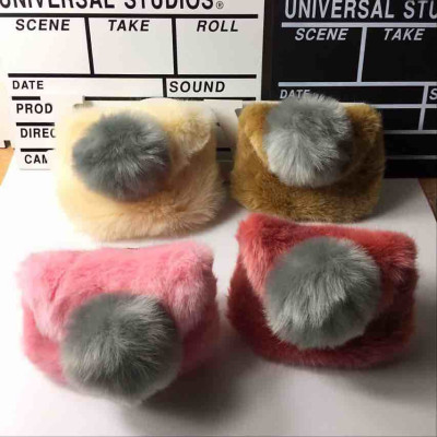 G460.3 女の子 ポシェット ファー バッグ/ ポンポン/毛球款 米色 beige ベージュ
