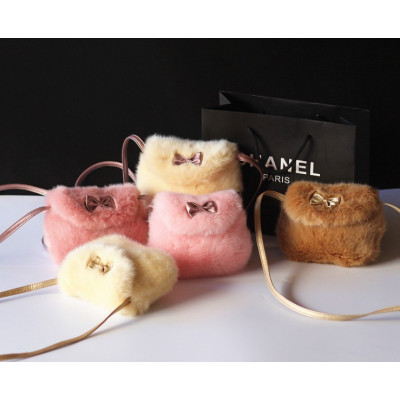 G460.9 女の子 ポシェット ファー バッグ/ リボン/蝴蝶结款