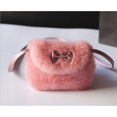 G460.5 女の子 ポシェット ファー バッグ/ リボン/蝴蝶结款 粉色 pink ピンク