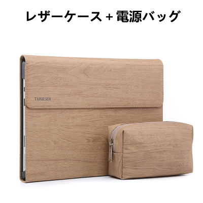 B870.3 Surface pro7/pro6/pro5/pro4用レザーケース(附带电源包)木纹纯色 浅棕色 light brown ライトブラウン