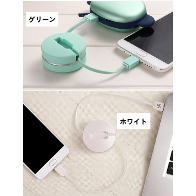 B747.0 Micro USB ケーブル巻き取りマカロン式 白色 white ホワイト