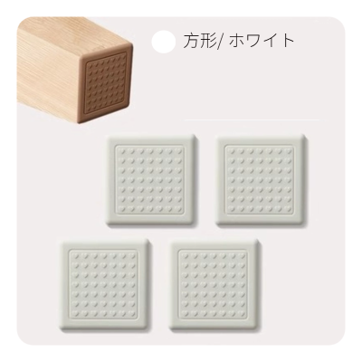 L039.34 椅子脚パッド(三色硅胶+无痕胶) 方形6cm/4枚入り 白色 white ホワイト