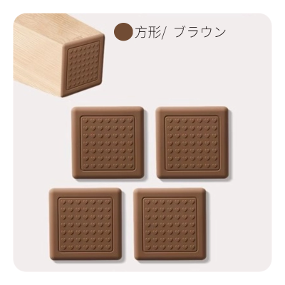 L039.54 椅子脚パッド(三色硅胶+无痕胶) 方形6cm/4枚入り 棕色 brown ブラウン