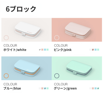 K043.5 ピルケース/錠剤ケース/お薬ケース(椭圆形)六格粉色 6ブロック 粉色 pink ピンク