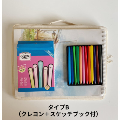 K044.2 子供用絵筆収納バッグ(帆布-画笔包(含蜡笔及本子)) タイプB(クレヨン+スケッチブック付)