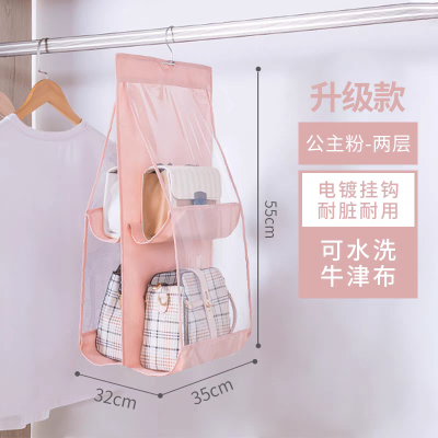 I552.11 吊り下げ式バッグ収納ハンガー(双面4格 3色款) 二段 藕粉色 lotus root pink レンコンピンク