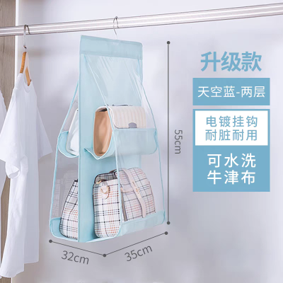 I552.12 吊り下げ式バッグ収納ハンガー(双面4格 3色款) 二段 天蓝色 sky blue スカイブルー