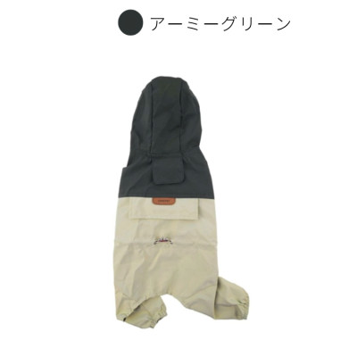 L075.22 ペット用レインウェア(撞色拼接四腿雨衣) Mサイズ/ 卡其 khaki カーキ