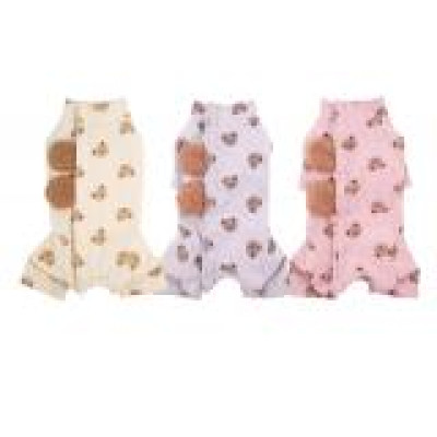 L073.11 犬猫の長袖術後ウェア(趣派小熊护肚衣长袖四腿) Sサイズ/ 浅紫色 light purple ライトパープル