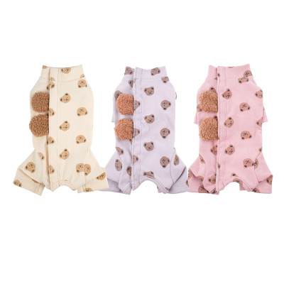 L073.15 犬猫の長袖術後ウェア(趣派小熊护肚衣长袖四腿) XXLサイズ/ 浅紫色 light purple ライトパープル