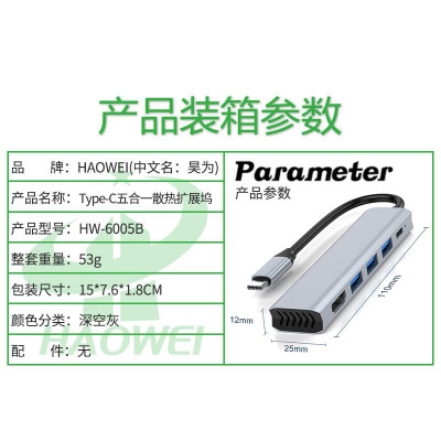 L046.0 Type-C adapter(HDMI+USB3.0+USB2.0*2+PD五合一) 5in1/ 深空灰 Space Gray スペースグレイ