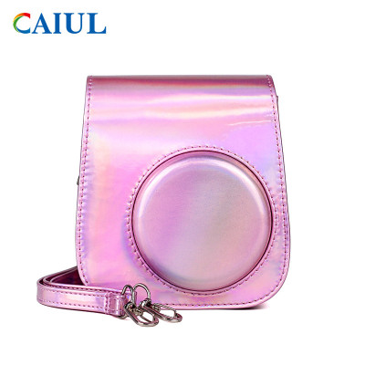 Z681.1 instax mini 8+/8/9用カメラレザーケース(水晶闪) タイプA 玫红色 hot pink ホットピンク