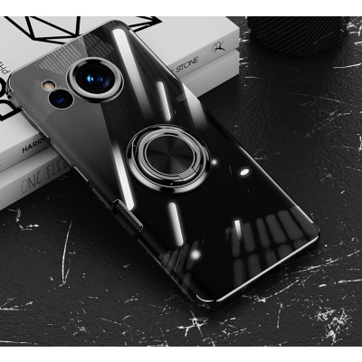 A448.24 Aquos Sense6用背面リングホルダーカバー(透色) 黑色 black ブラック