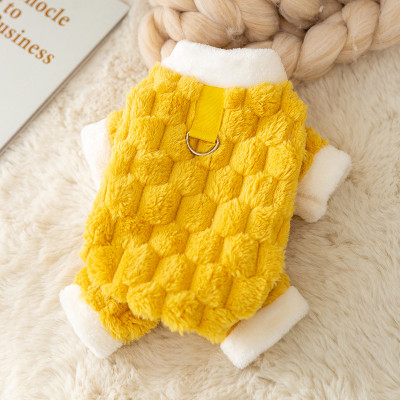L524.22 中小型犬服-可牵引四脚绒衣 Sサイズ 黄色 yellow イエロー