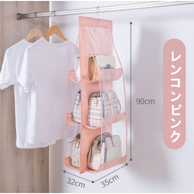 I552.1 吊り下げ式バッグ収納ハンガー(双面6格 3色款) 三段 藕粉色 lotus root pink レンコンピンク