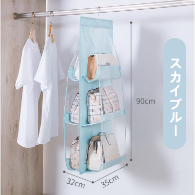 I552.2 吊り下げ式バッグ収納ハンガー(双面6格 3色款) 三段 天蓝色 sky blue スカイブルー