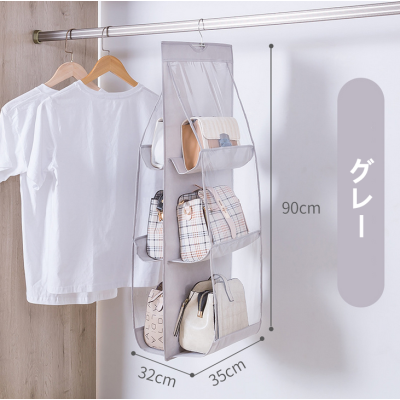 I552.3 吊り下げ式バッグ収納ハンガー(双面6格 3色款) 三段 灰色 gary グレー