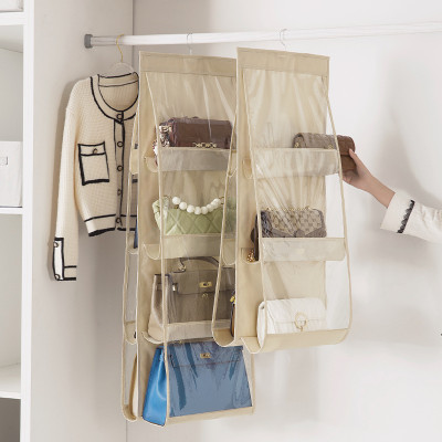 I552.4 吊り下げ式バッグ収納ハンガー(双面6格) 三段 米色 beige ベージュ