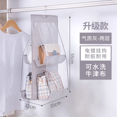 I552.13 吊り下げ式バッグ収納ハンガー(双面4格 3色款) 二段 灰色 gary グレー
